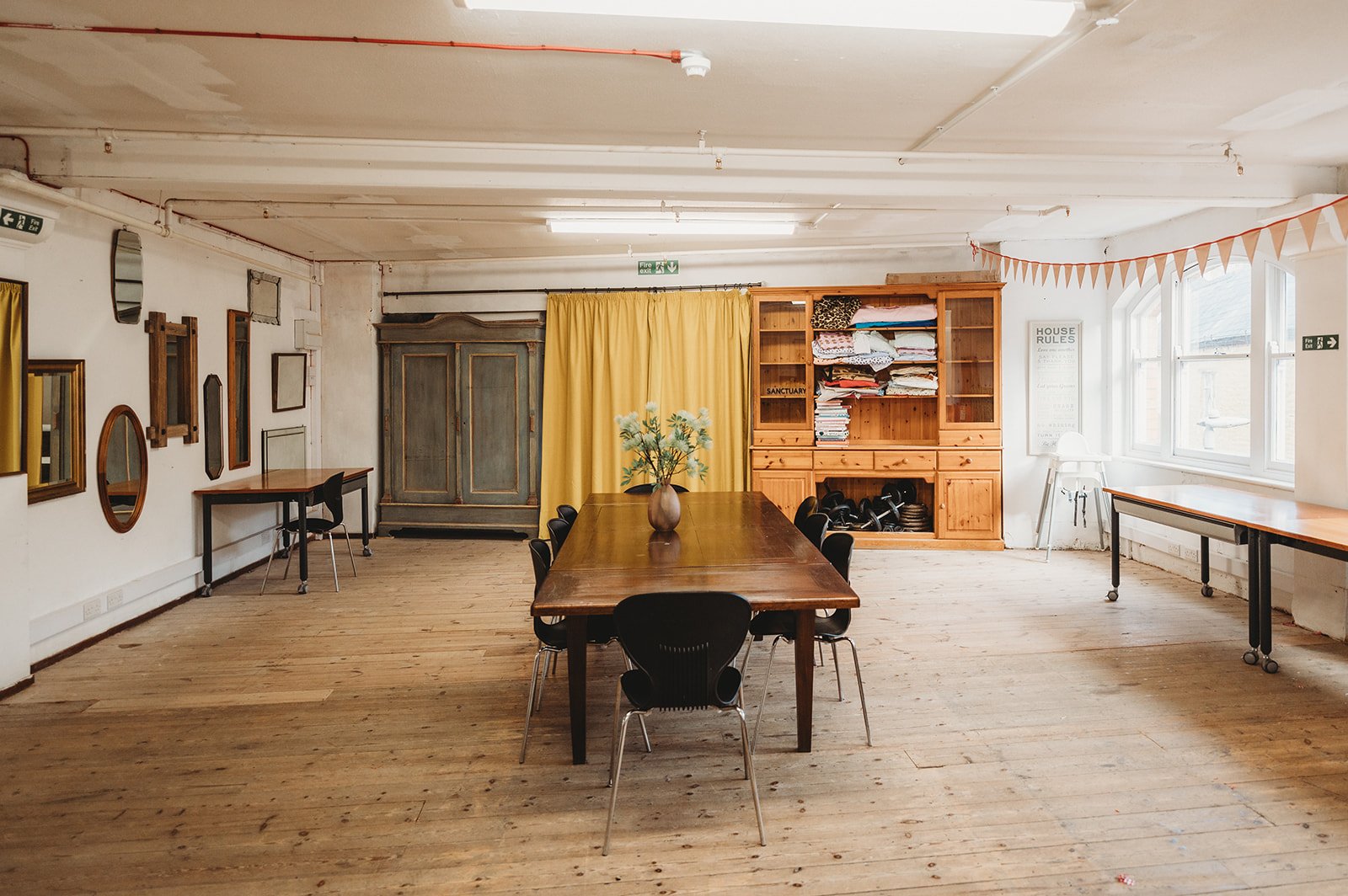The Sanctuary is a spacious, private room that lends itself to a variety of uses, from fitness classes and sewing workshops to clothes swap events and training sessions.